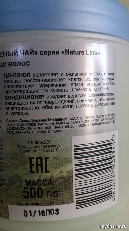 Что касается состава, то в нем есть экстракт листьев зеленого чая (CAMELIA SINENSYS LEAF EXTRACT), который защищает волосы и кожу головы от вредных воздействий внешней среды. Содержится здесь также пантенол, который увлажняет, восстанавливает волос изнутри, удерживает в нем влагу, устраняет сухость, сечение, ломкость.