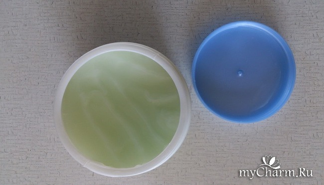О консистенции. Во-первых, по виду бальзам кажется очень мягким, если кто знаком с «Ревивором» от «Белиты» – то вот на вид он кажется именно таким. Но – сюрприз! – его консистенция гораздо более плотная. Она не похожа на гель, не стекает с рук. Может, не самое лучшее сравнение, но мне по плотности напомнило нечто среднее между очень густой сметаной и желе. Когда зачерпываешь (а по другому и не скажешь) его из банки, то остается явный след от пальцев, который никуда не пропадает еще долго. Насколько я поняла, так проявляет себя парафин, который присутствует в составе.