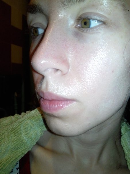 Спать пошла через пару часов. Маска к тому времени уже достаточно впиталась, но был виден жирноватый блеск по лицу.