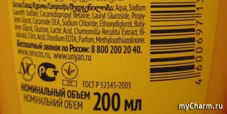 Если для малыша при выборе шампуня имеют значение всего 2 критерия – оформление и аромат средства, то мамы куда требовательнее к детской продукции. Для нас важно знать, что средство не содержит вредных и опасных веществ, способных накапливаться в организме ребенка или могущих вызвать аллергические реакции. С этой позиции детский шампунь «Ушастый нянь» с ромашкой – достойный вариант. Он не содержит щелочь, краситель, запрещенные вещества, о чем можно узнать с этикетки на обратной стороне продукта.