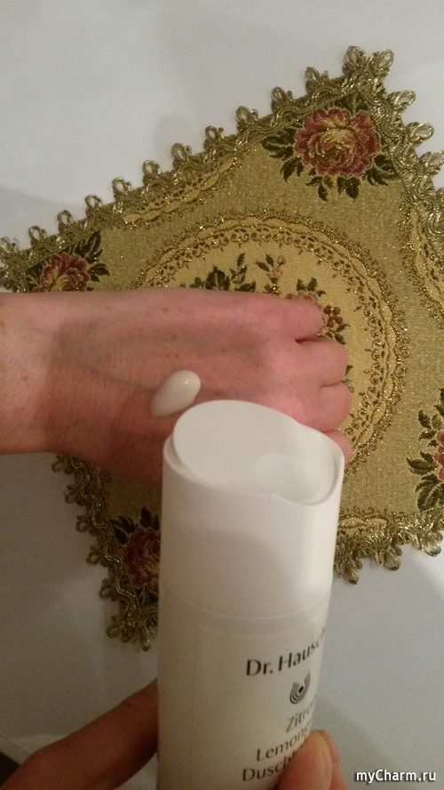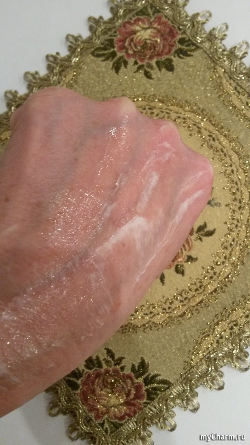 Консистенция очень нежная, слегка пенится. Небольшое количество растираю в ладошках и наношу на влажную кожу, как вариант можно использовать мочалку, это как кому нравится.
