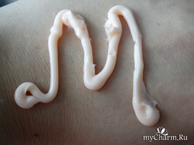 Крем имеет нежный персиковый оттенок и приятную текстуру.