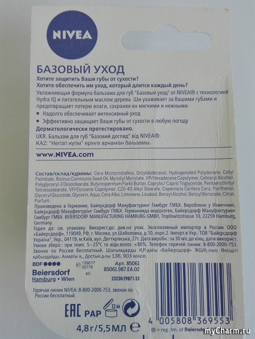 По ощущениям бальзам для губ Базовый уход прекрасно подойдет для зимнего времени года. Сохранит наши нежные губки от холодного ветра, мороза. Бальзамы для губ имеют специальную увлажняющую формулу. Бальзам Нивея предохранит губы от шелушения, от сухости.