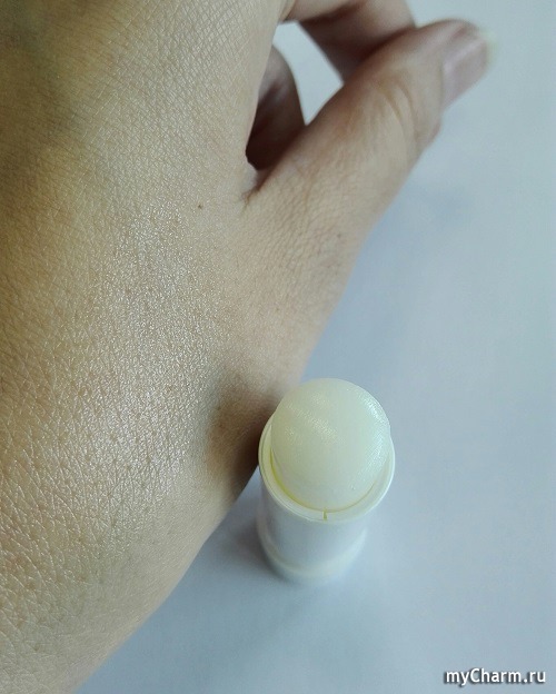 Также я пробовала на бальзам наносить цветную губную помаду. Особенно, если помада сушит губы, то без такого бальзама просто не обойтись. Эффект отличный, помада ложится ровно, не растекается. Структура бальзама не жирная, легкая, поэтому вполне позволяет применять её под цветную помаду. Или наносить сверху на матовую помаду, придавая яркость цвету.