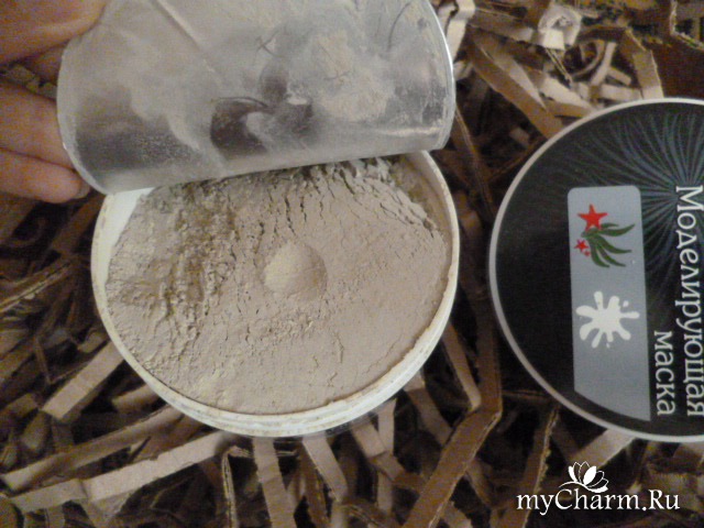 В пластиковой банке находится 70 гр. продукта. Внутри есть плотная защитная фольга. Маска представляет собой порошкообразную субстанцию серо-зеленого цвета. Здесь настолько мелкий помол, что это практически невесомая пудра.