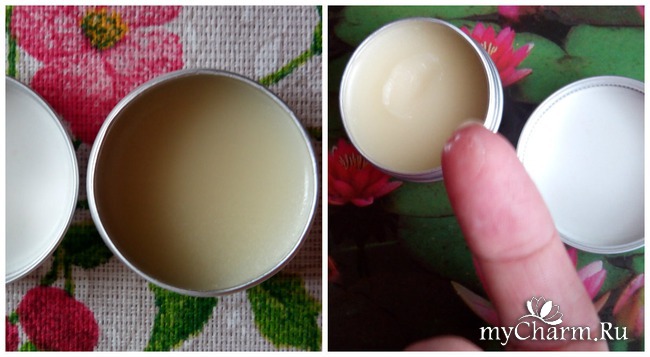 Сам бальзам мне напомнил воск. Но по консистенции он очень нежный, легко размазывается и быстро впитывается в кожу. Единственный, но для меня существенный минус этого бальзама, это то, что наносить его надо пальцем. А, согласитесь, это делать не всегда удобно и гигиенично. Поэтому я предпочитаю выдвижные бальзамы.