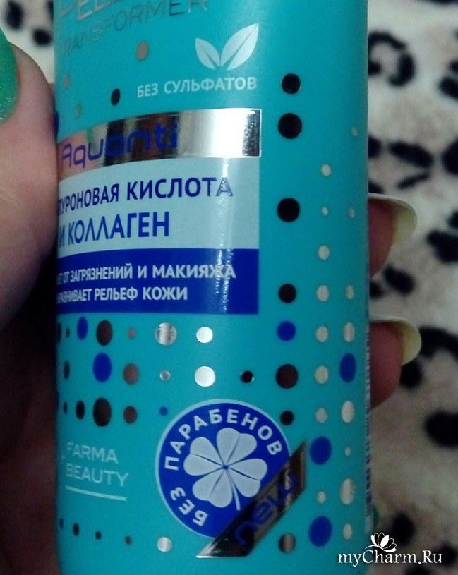 Производитель уверяет в отсутствии сульфатов, спирта, красителей, парабенов и обещает очищение от макияжа (в том числе и стойкого), загрязнений, а также выравнивание рельефа кожи лица. Но самое главное для меня это тот факт, что пилинг не содержит жёстких абразивных частиц. Специально разработанный комплекс Aquanti, включающий в себя гиалуроновую и фруктовую кислоты, а также коллаген, восстанавливает водно-липидный баланс, уменьшает глубину морщин, цвет лица улучшается, а стянутости кожи после умывания не предвидится.