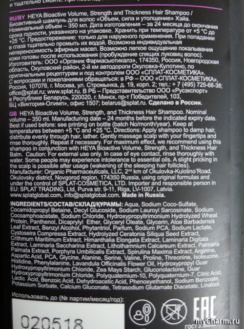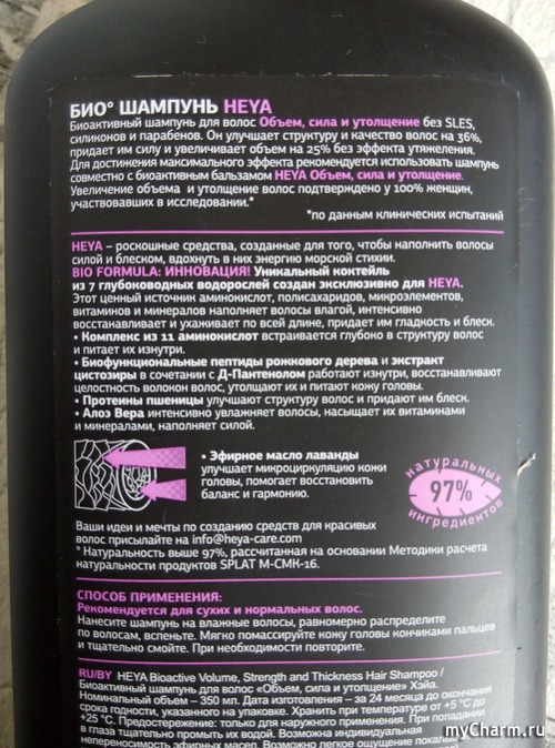 Хочу поделиться своими впечатлениями после использования шампуня новой для меня марки. Итак, Биоактивный шампунь "Объем, сила и утолщение" от Heya (Splat).