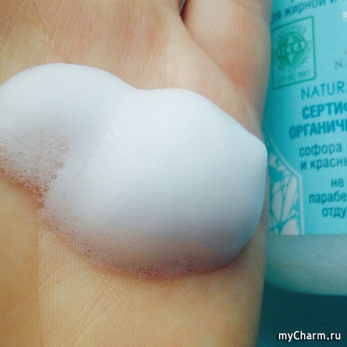 Зато есть различные экстракты и натуральный пенообразователь - мыльный корень. Серия для жирной и комбинированной кожи у Natura Siberica содержит экстракты ромашки и софоры японской, которые при очищении кожи способны сохранять её оптимальный уровень увлажненности, а так же питать, защищать и успокаивать. В данном муссе содержатся еще такие экстракты как:
