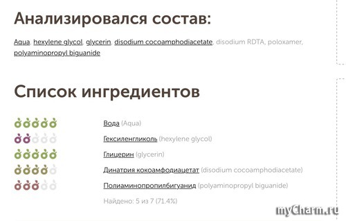 Поскольку тут из-за особенностей упаковки сложно разглядеть все составляющие, то я вручную внесла их в сервис проверки: