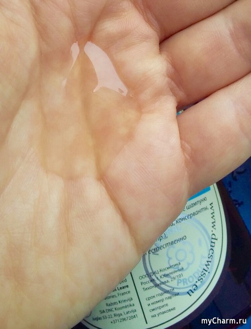 По текстуре шампунь для окрашенных волос густой и я бы даже сказала, что напоминает желе. Пахнет, на мой взгляд, подобно какому-нибудь салонному профессиональному средству. Запах этот не то чтобы приятный, но не отталкивающий, как-то я нейтрально к такому отношусь. Тем более, что на волосах он в принципе не остаётся.