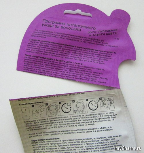 В каталоге продукции на сайте компании представлены 5 видов масок. Мне досталась «Восстановление и защита цвета».