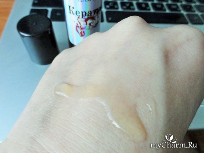 Флакончик, емкостью 30 мл, из коричневого прозрачного пластика с удобным дозатором помещен в картонную коробочку, переливающуюся всеми цветами радуги. Как и на всех средствах DNC, на коробке указана вся необходимая потребителю информация о продукте. Рассказано вкратце о кератине для волос, указан состав и ожидаемый результат от применения этого средства.