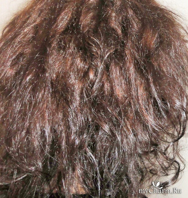 После того, как волосы высохли, можно оценить действие средства. Волосы становятся шелковистыми, гладкими на ощупь, появляется объем. Мои волнистые волосы средство не разглаживает, не выпрямляет, что тоже хорошо.