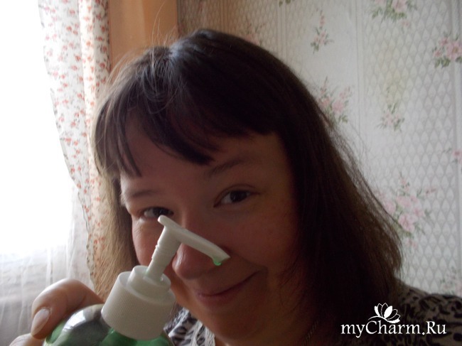 Я мою голову два раза. Беру двойную дозу, два клика шампуня, немного воды и намыливаю ладошки, вспениваю и наношу на голову. Первый раз шампунь плохо намыливается, но наносится хорошо, поэтому я не обращаю внимания и продолжаю втирать в кожу головы подушечками пальцев, как желтковую маску. Потом смываю и повторяю. Здесь уже замечательно намыливается и взбивается пена, и я уже пользуюсь одной дозой.