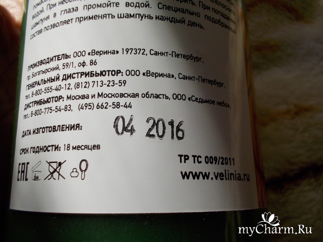 Срок годности 18 месяцев, то есть 1,5 года. Это радует, значит, шампунь содержит полезные составляющие. Обычные шампуни имеют три года годности.