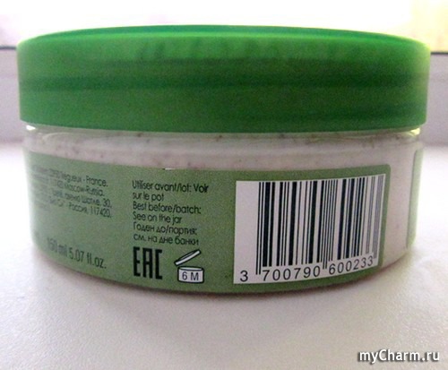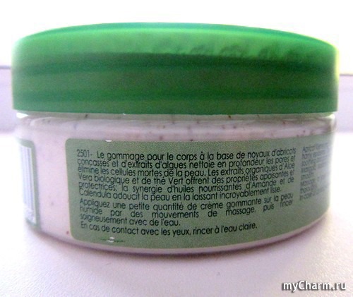 Сырье для скраба Gommage Pour Le Corps/Body Scrub, как сообщается на упаковке, экологическое и натуральное.