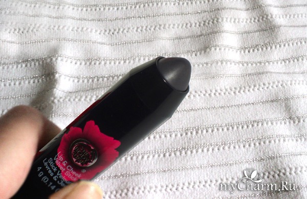 Внешне это карандаш почти черного цвета. Но формула должна адаптироваться к рН вашей кожи, превращаясь на коже в цвет мака. Это и привлекло. Ведь очень сложно быть постоянно в поиске своего оттенка, а тут – универсальный цвет, для любого тона кожи и типа кожи.Другое отличие продукта – двойное назначение, его можно использовать и для щек и для губ. Можно одновременно, можно по отдельности.