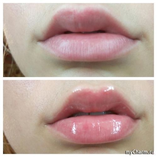 - На губах разглаживаются трещинки и неровности, за счет этого губы становятся более объемными.