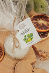 Бомбочка упакована в прозрачную пленку, перевязана шпагатом и оснащена небольшой этикеткой в виде мини-брошюрки с более подробной информацией о продукте.