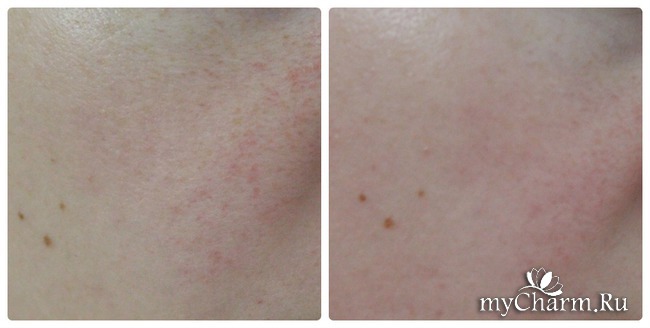 Во-первых, так хорошо виднеющиеся сосудики на лице стали менее заметны.