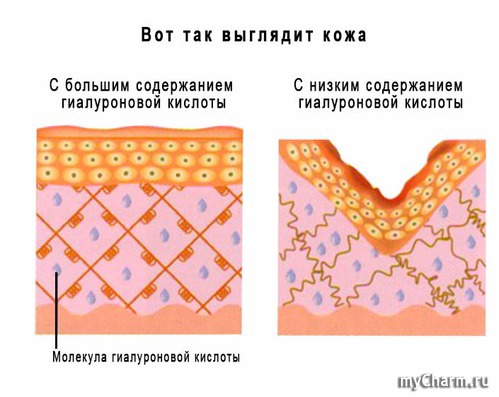 А вот действие гиалуроновой кислоты на кожу я изучила подробно и хочу для наглядности показать вам схематично.