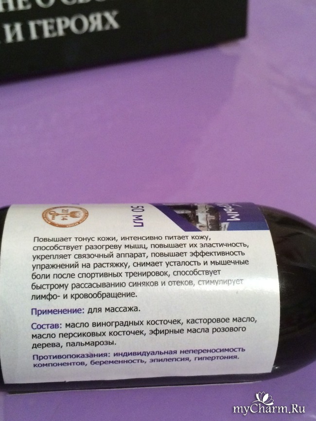 Так как я на данный момент времени хожу на массаж, решила как раз испробовать его на себе. Вместо масел, которые использует массажист, попросила в этот раз натереть меня данным средством. Сразу скажу, что все действия и эффекты я, конечно, не в состоянии испытать, но в чем оно подействовало на меня, объясню. Мышцы разогревает просто отлично, после него - правда! - хоть на растяжку иди. После массажа с таким маслом усталость всего организма пропадает, заодно получаешь ароматерапию (запах был на весь кабинет). На ногах были небольшие синячки, после трех процедур, когда масло впитывалось в кожу, они прошли, будто их и не было. Ну а то, что улучшается кровообращение, об этом можно и не говорить. Так как это происходит само собой, когда начинают "разогревать" кожу.
