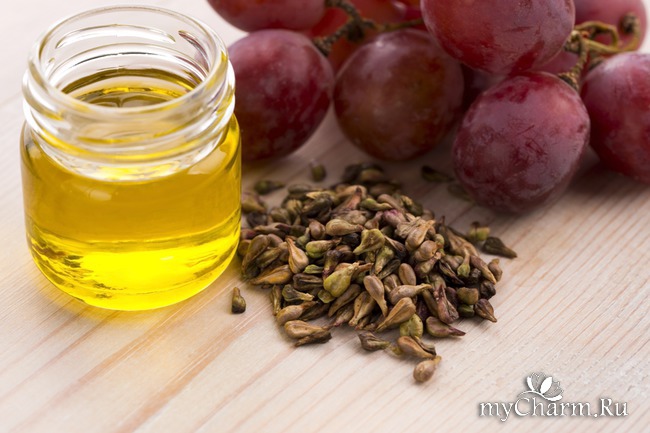 Масло виноградных косточек - помогает вырабатывать коллаген, делает кожу упругой, имеет большой комплекс микроэлементов и витаминов.