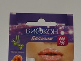 Сверху на коробочке обозначено наименование бренда "Биокон" и самого продукта "бальзам для губ".