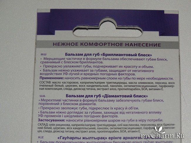 На нём лишь указана фирма "Биокон" и полное наименование средства:"бальзам для губ Бриллиантовый блеск".