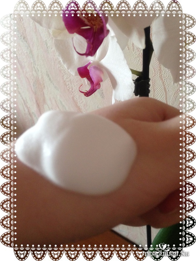 Консистенция пенки плотная, но очень легкая, действительно - воздушная, как и написано. Запах трудно описать - мне пахнет почему-то мужской пеной для бритья :) Типа Gillette:)