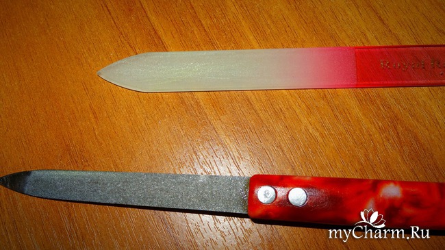Стеклянную пилочку лучше не использовать, так как она повреждает пленку.