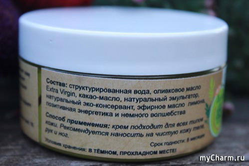 Крем для тела «Чаровница» от Мыловаренной компании «Леля» именно такой: его нежный оливковый аромат со сладкими нотками какао настраивают на положительные эмоции, а всю будничную усталость, тревоги и переживания отбрасывают далеко назад. Не зря помимо перечисления всех компонентов состава средства, в конце списка значатся «позитивная энергетика и немного волшебства». Хоть верьте, хоть нет, но в этом действительно что-то есть!