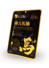 Маска упакована в красочный черный пакет из мягкой фольги, по краям которого проходит золотая окантовка.