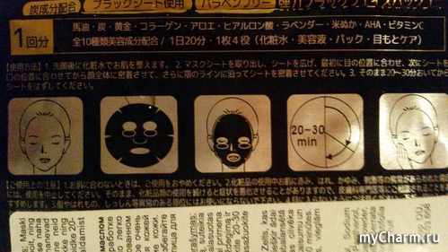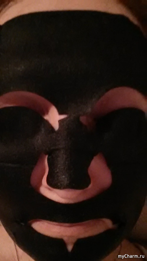 Активированный уголь задает окрас маске. Для век предусмотрены маленькие клапана. Распределяем маску на чистое лицо, прилегает очень плотно, повторяя контуры лица. Главное не напугать ближних.