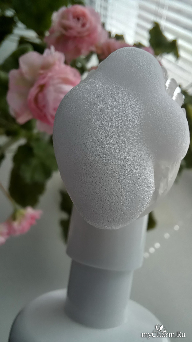Прозрачная жидкость после нажатия на помпу 2 - 3 раза, превращается в обильную, невесомую пенку.