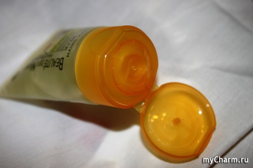 Это очень миниатюрный тюбик. Маленький пузатенький малыш в 30 мл может удобно расположиться в любой сумочке и мирно ждать своей очереди в течение всего срока годности (3 года). Он изготовлен из матового прозрачного пластика нежно-желтого цвета. А крышка с откидным клапаном является сочным солнечным нежно-оранжевым завершением облика.