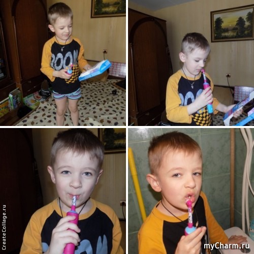 Даже если вы купите такую щетку, дадите ребенку почистить ею зубы, а он испугается ее жужжания и упорно будет щетку отталкивать – не расстраивайтесь, значит, время использования такой щеточки еще не пришло. Отложите ее и позже попробуйте снова предложить ребенку чистку такой щеткой. Но это касается совсем маленьких детей. У моего как-то этот момент прошел гладко. Он вообще любит всяческие гаджеты, технические новинки, потому с щеткой подружился сразу. Прилагаю фото))). Очень рекомендую Электрическую зубную щетку Oral-B Vitality «Холодное сердце» мамам, заботящимся о зубках своих детей.