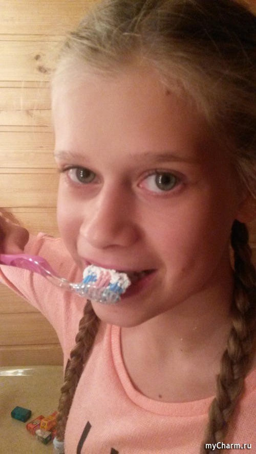 В садике и школе с определенной периодичностью их учат наглядно врачи-гигиенисты правильно ухаживать за зубами, поэтому все делают по правилам, но глазки округляются от непривычного ощущения присутствия порошка на зубах, охлаждающего действия мяты, но продолжают усердно чистить, вспоминая Мойдодыра.