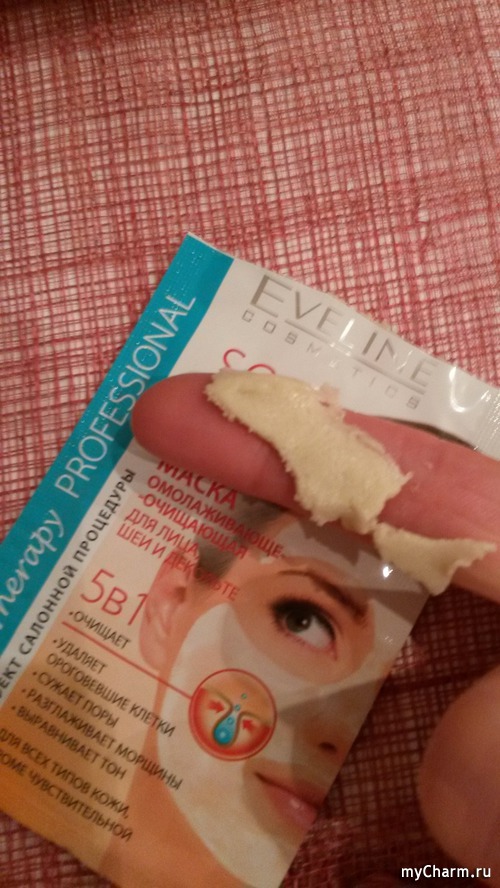Маска впитывается кожей и через какое-то время появляется легкое ощущение стянутости, но это не напрягает, ведь там каолин и это естественно. Особенно чувствуется на шее, там кожа более нежная, но и это хорошо, значит процесс пошел, шейка будет лебединая.