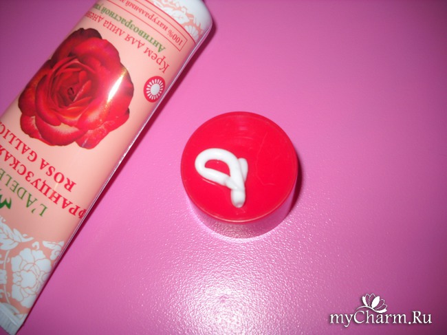 А внутри тюбика спрятался потрясающий крем молочно-белого цвета, который может похвастаться весьма умеренной густотой и чарующим ароматом розы. Пахнет он – закачаешься! Впрочем, изумительным ароматом могут похвастаться все без исключения средства от L’Adeleide, которые мне когда-либо доводилось попробовать!