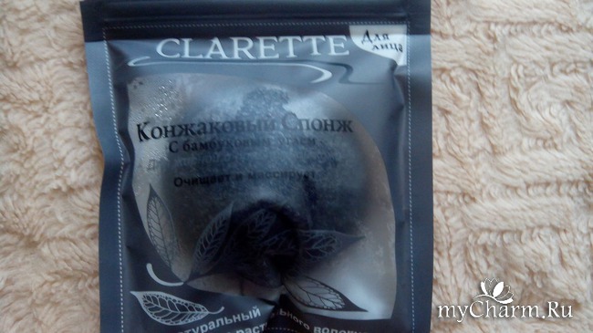 Так, за активное участие в жизни нашего сайте в мае-июне мне спонсоры прислали вот такой замечательный Конжаковый спонж с бамбуковым углем французской компании Clarette.