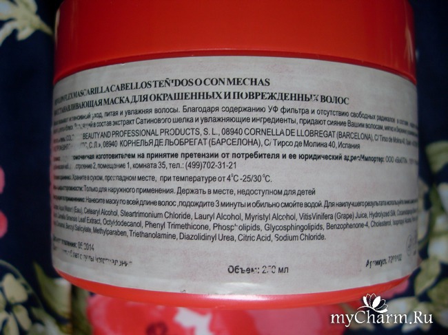 Помимо увлажняющих компонентов, в маске содержатся УФ-фильтры. Говорить об их пользе можно часами, ограничимся только тем, что заметим: они предупреждают ухудшение состояния волос, а если ваши локоны окрашены – помогают сохранить цвет и блеск на более длительный срок. Вот почему эта маска предназначена для окрашенных и поврежденных волос.