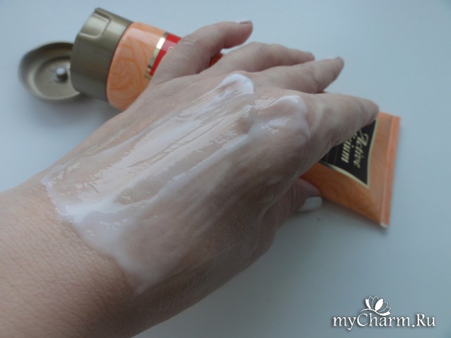 Крем на вид обычного белого цвета, консистенции средней густоты с ненавязчивым травяным ароматом. При нанесении на руки и распределении крема по коже этот, довольно легкий, как кажется сначала, крем, постепенно превращается в легкое масло. Это масло какое-то время еще остается на коже, но постепенно, минут через 5-7 и оно впитывается в кожу без следа. Остается ощущение того, что кожа рук напиталась, смягчилась и увлажнилась. Отличное действие крема!