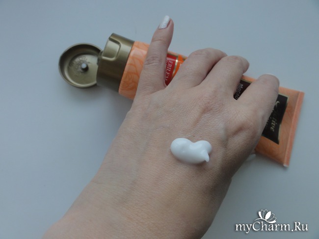 Никакой искусственной отдушки, похоже, производители в крем не добавили, так как запах у крема естественный, косметический с примесью экстрактов трав, в которому быстро привыкаешь, потому что он легкий и совершенно не навязчивый.