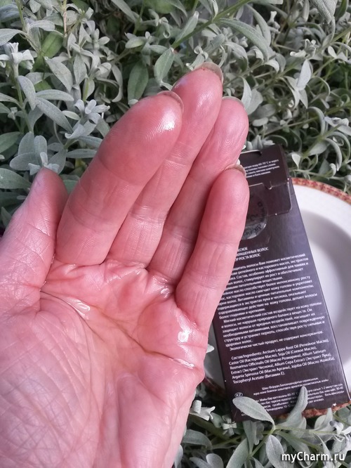 Масло с легким желтоватым оттенком, консистенция не очень густая, хотя присутствует касторовое масло.