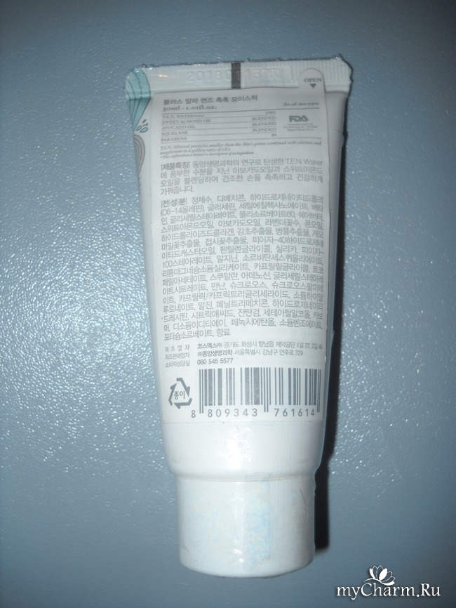 А без верхней пленочки вид тюбика сзади таков. Здесь я уже четко разобрала, что крем сделан в Корее, а его объем составляет 30 мл.