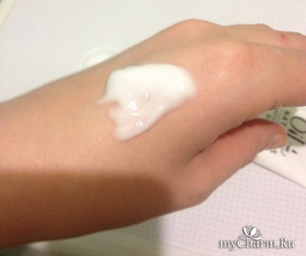 Крем легко выдавливается в нужном количестве. Что касается запаха, то он довольно приятный. Очень нежный и не навязчивый. Чувствуется в нем маслянистость и немного кислинки. Консистенция крема тоже очень удачна, на мой взгляд. Он совсем не жирный. Если растереть по руке, то кажется, что это вообще нежное молочко, а не крем. Но при этом он достаточно густой и не течет. Цвет крема белый, но структура его не плотная, то есть он такой перламутрово-белый, что ли.