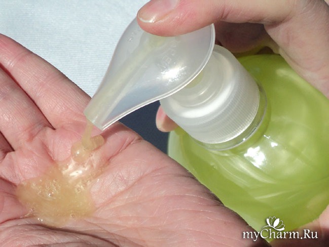 Консистенция у мыла более жидкая, чем у классических гелей для душа, и это хорошо для данного продукта, ведь мыло нужно быстро распределить по рукам без помощи мочалки или губки.