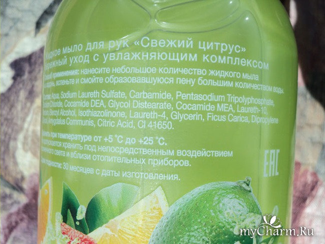 Суммируя все плюсы и минусы, я не могу назвать это жидкое мыло эталоном. Но в отдельных показателях оно для меня таким стало: мне понравилась текстура, консистенция, качество. Осталось небольшое недовольство, что жидкое мыло с названием «Fresh citrus» не обладает яркими цитрусовыми парфюмерными нотами. И большое количество ингредиентов с присутствием потенциально опасных «layreth» – также в плюсы записать трудно.